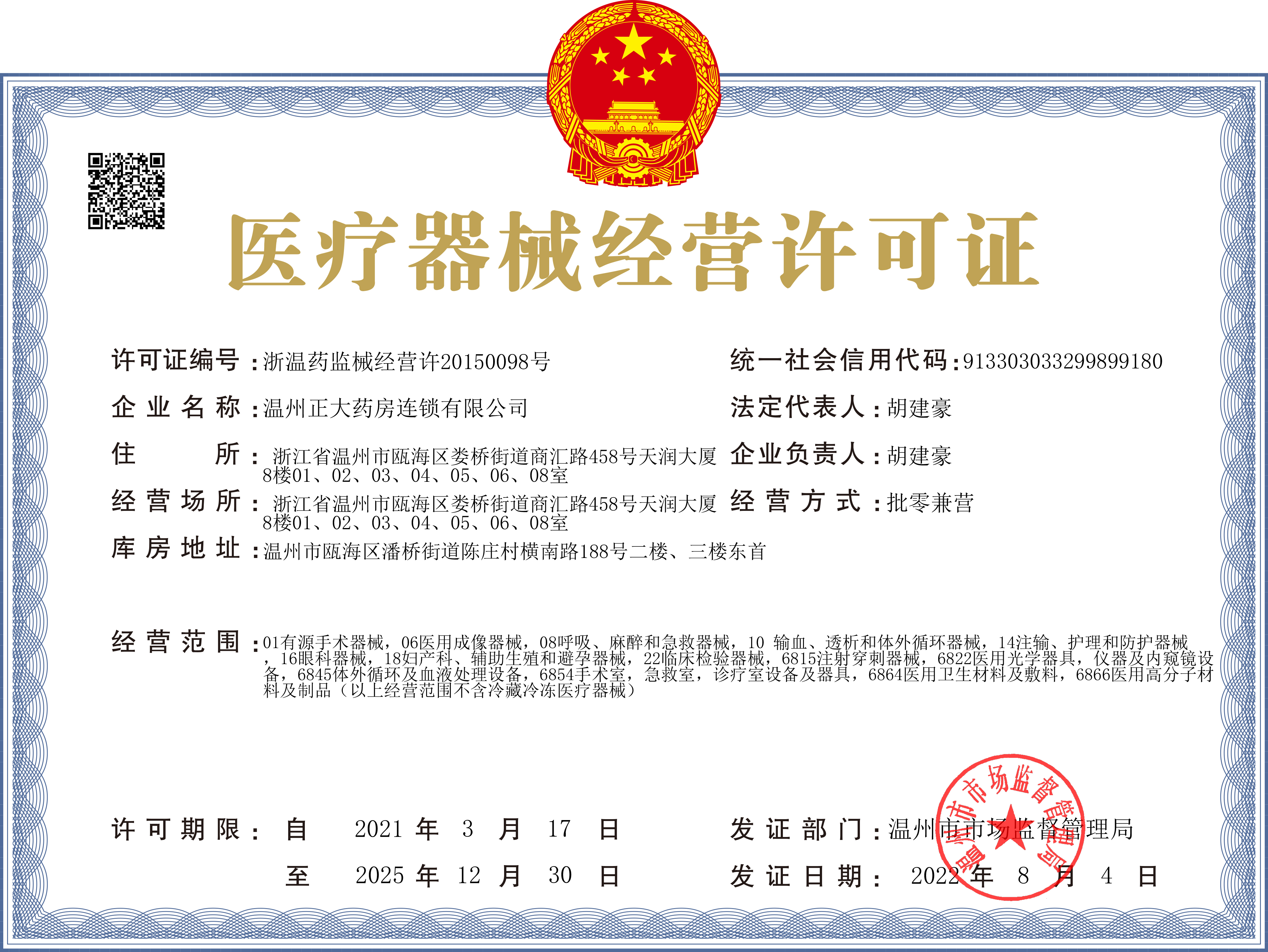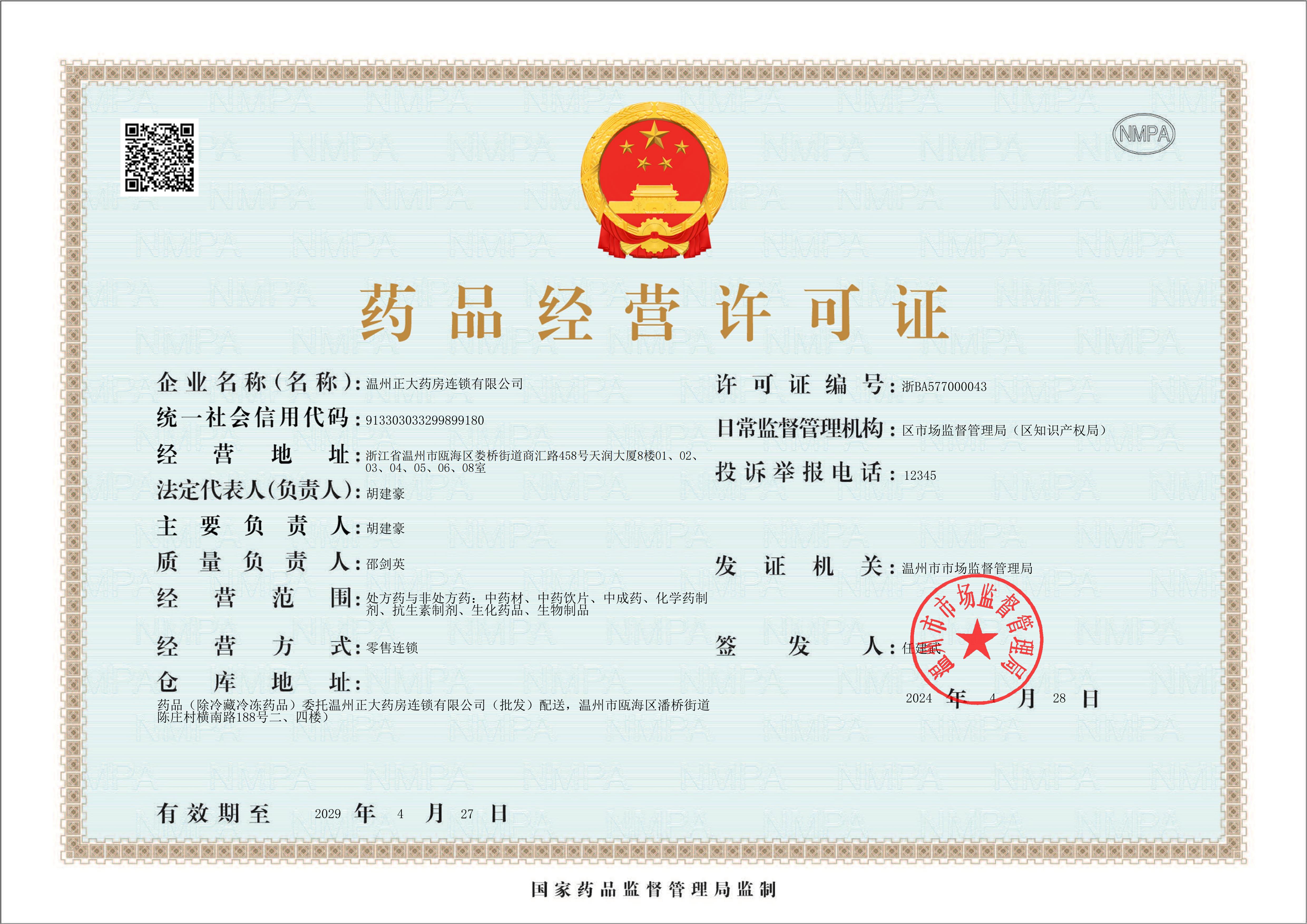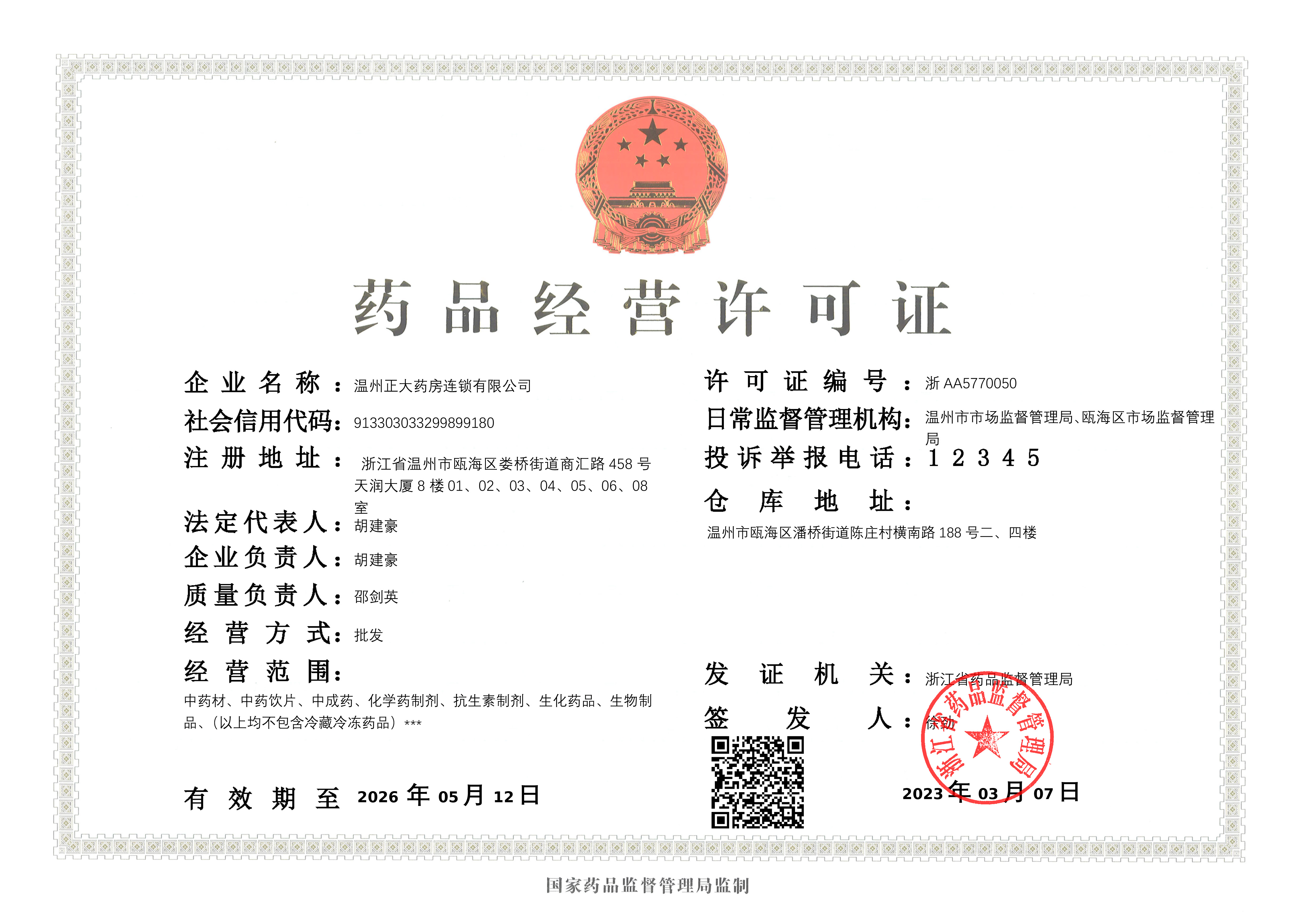 溫州正大藥房連鎖有限公司成立于2015年2月,是一家藥品及醫(yī)療器械批發(fā)、零售連鎖、電子商務(wù)為核心業(yè)務(wù)的股份制企業(yè)。公司注冊(cè)地址:浙江省溫州市甌海區(qū)婁橋街道商匯路458號(hào)天潤(rùn)大廈8樓01、02、03、04、05、06、08室。經(jīng)營(yíng)方式:批發(fā)、零售連鎖,經(jīng)營(yíng)范圍:中藥材、中藥飲片、中成藥、化學(xué)藥制劑、抗生素制劑、生化藥品、生物制品。公司注冊(cè)資金1000萬(wàn)元,經(jīng)濟(jì)性質(zhì)為有限責(zé)任公司.