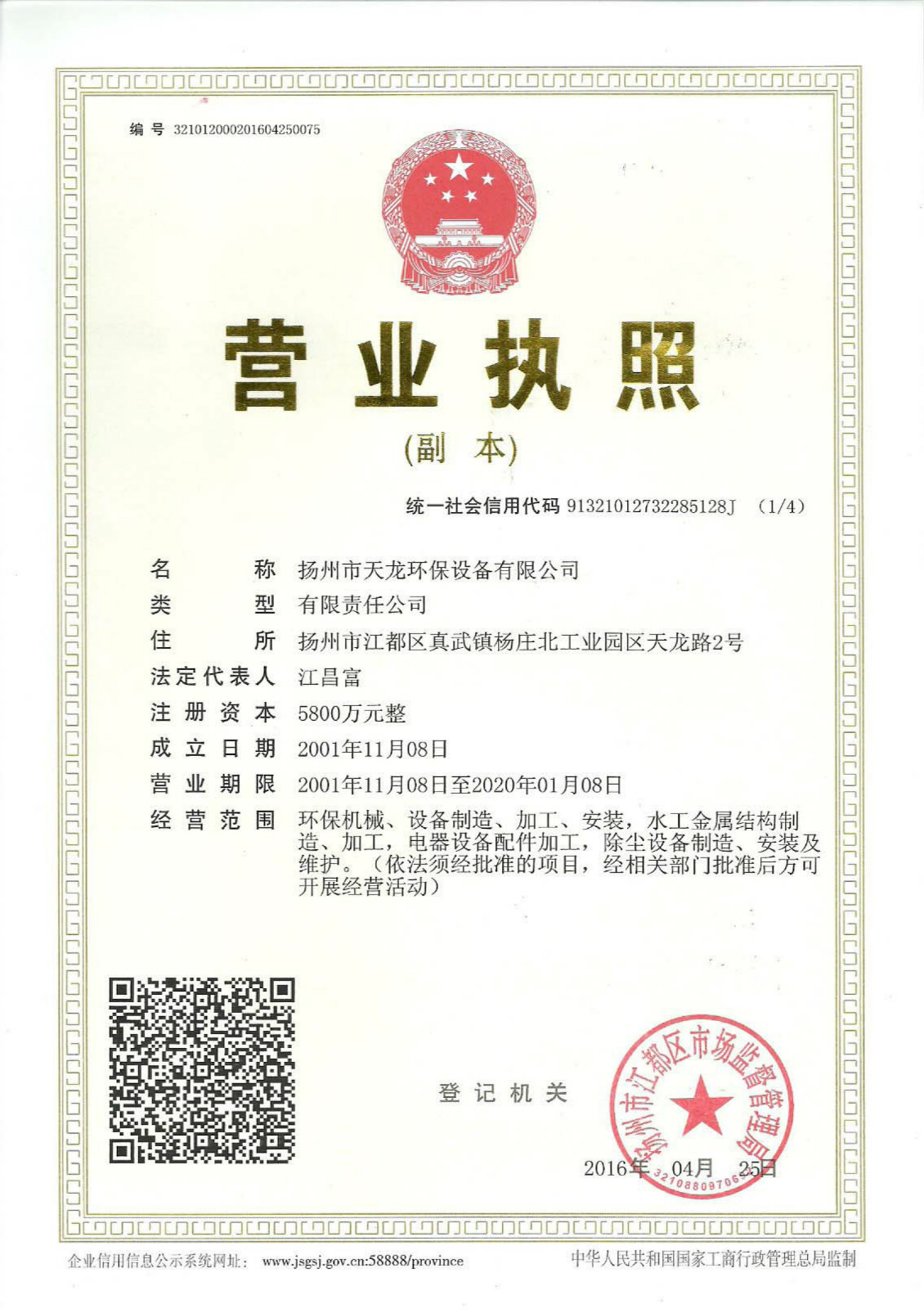 揚州市天龍環(huán)保設(shè)備有限公司