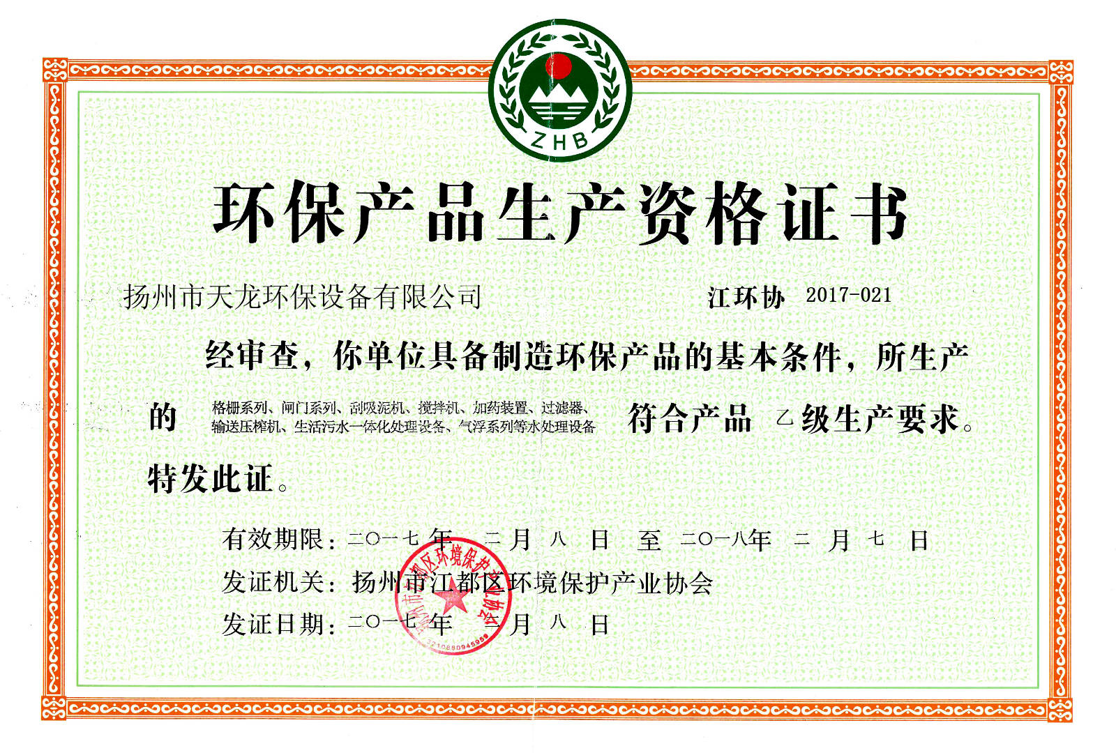 • 2018-12-13環(huán)保產(chǎn)品生產(chǎn)資格證書查看